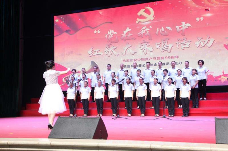 為了慶祝中國共產(chǎn)黨建黨99周年,6月28日,晉城市非公企業(yè)黨委在澤州天泰錦辰煤業(yè)有限公司組織開展了“黨在我心中”紅歌大家唱活動(dòng),潔霸清潔黨支部全體黨員及公司骨干參加演唱活動(dòng)。