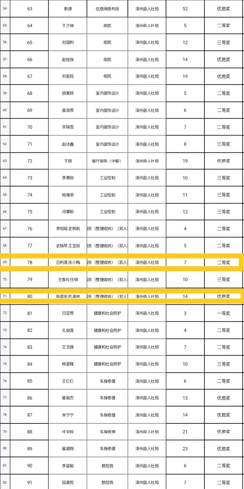 近日,從澤州縣人社局傳來好消息,公司呂利清、張小梅在第三屆晉城職業(yè)技能大賽家政服務(wù)(整理收納)項(xiàng)目(雙人賽)中榮獲二等獎,陳雷麗、杭美林在同項(xiàng)目中榮獲優(yōu)勝獎。