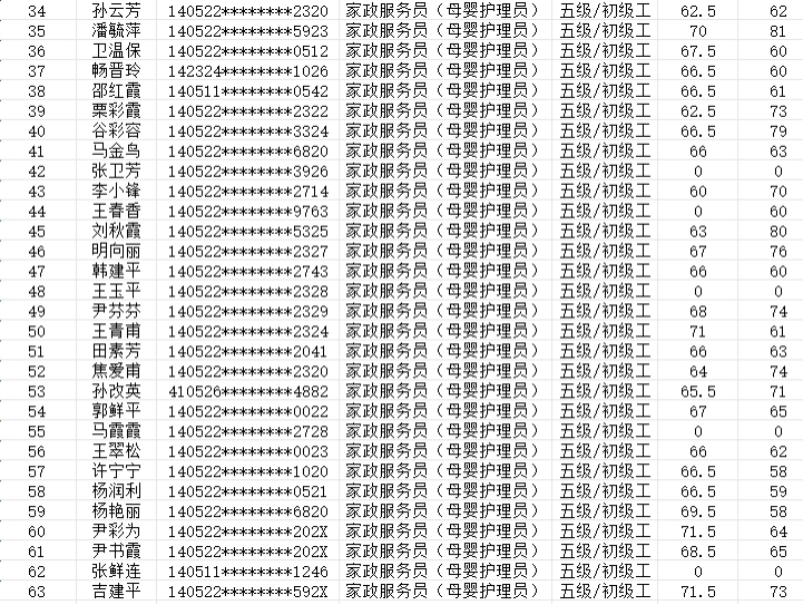 晉城市潔霸清潔服務股份有限公司 職業(yè)技能等級認定中心 認定人員成績公示
