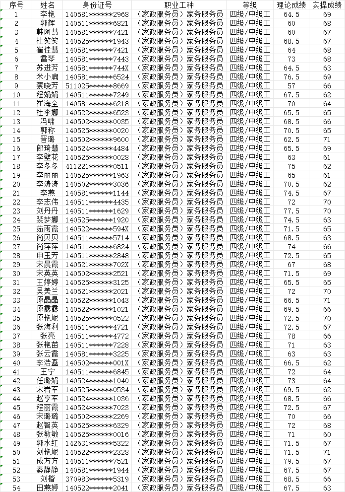 2024年1月27日上午第5批家政服務員中級認定人員成績公示