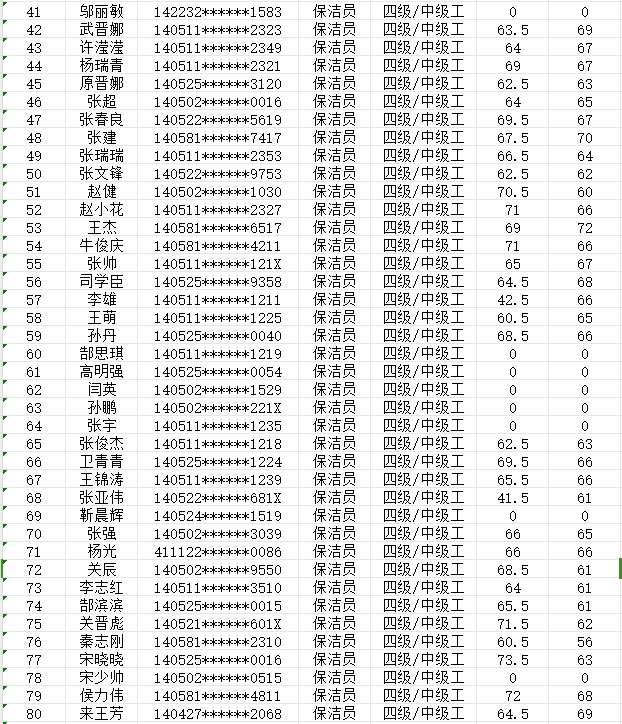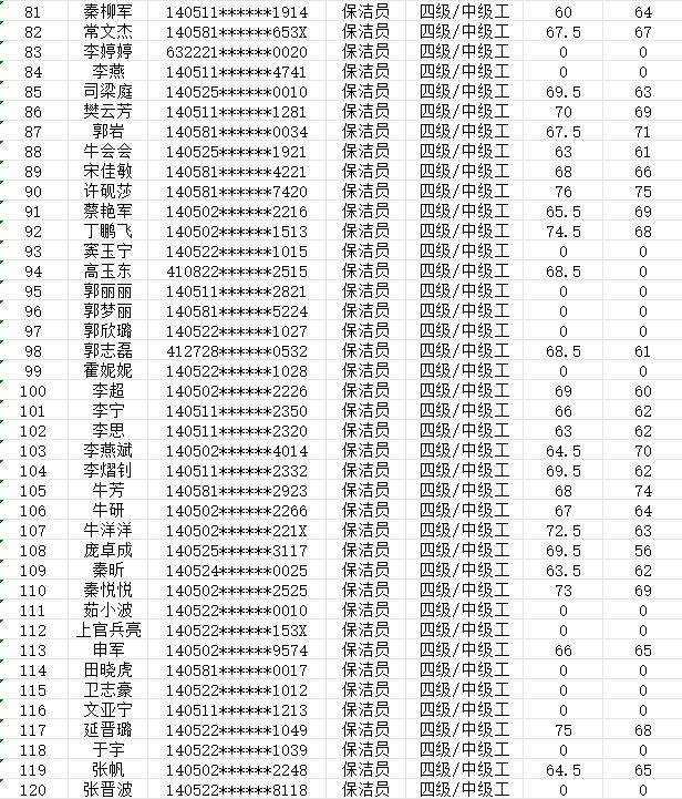 晉城市潔霸清潔服務股份有限公司職業(yè)技能等級認定中心現(xiàn)將2024年2月3日認定人員成績公示如下: