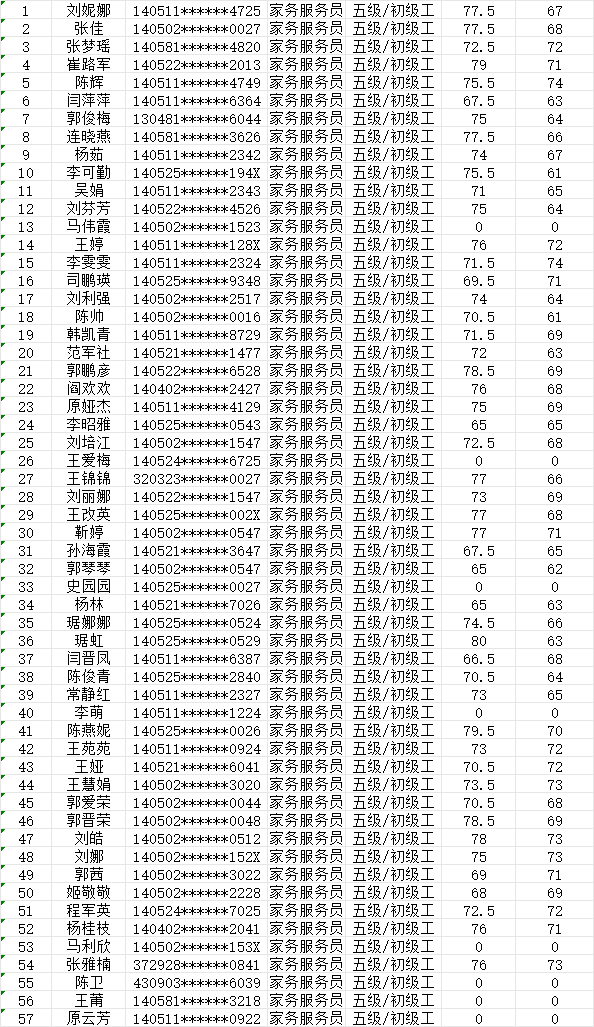 2024年9月21日第39批家政服務(wù)員初級認(rèn)定人員成績公示