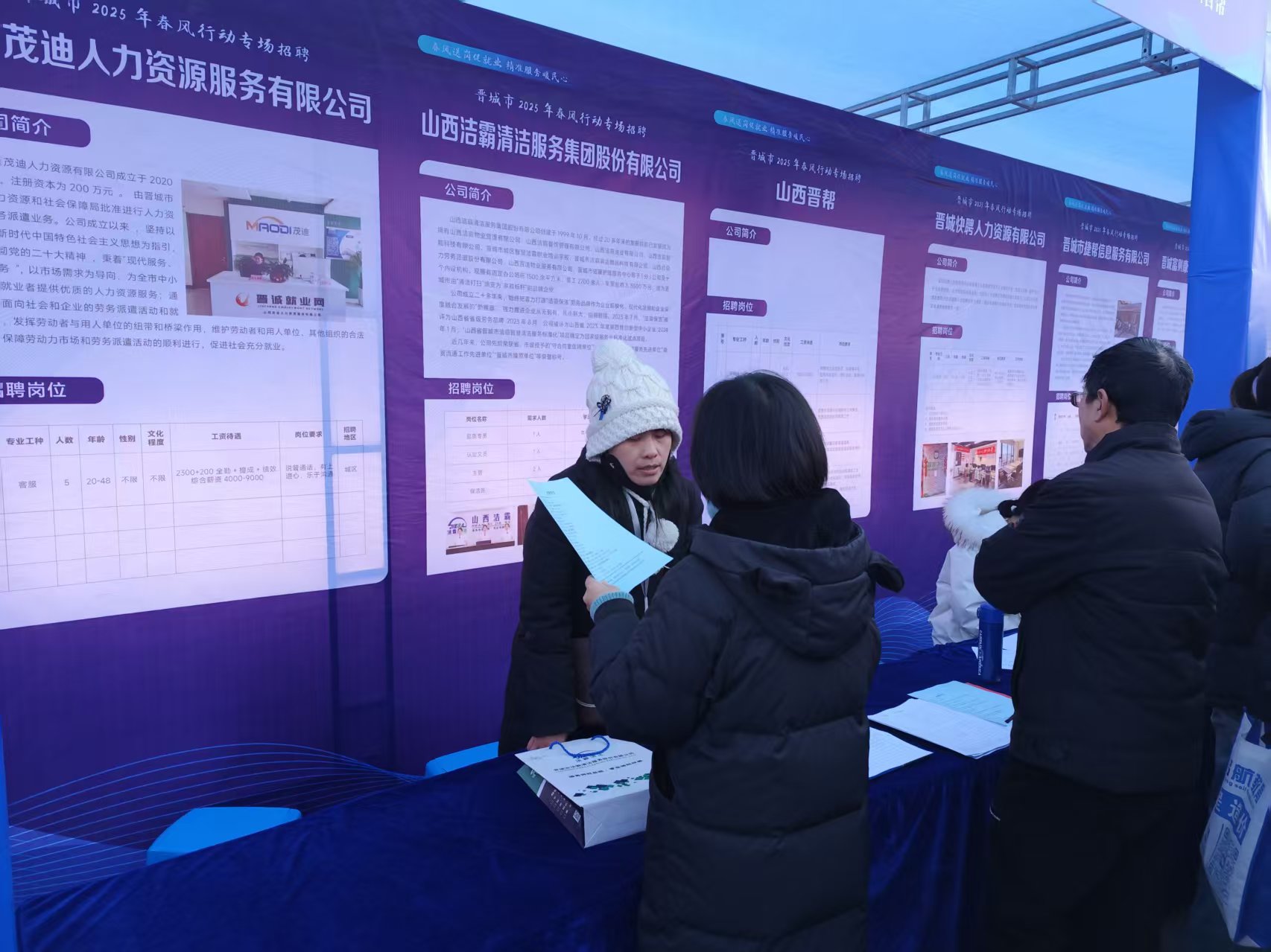 2月9日,“春風送崗促就業(yè) 精準服務暖民心”晉城市2025年春風行動專場招聘活動在陽電體育場舉行。我公司人力資源部參加活動。